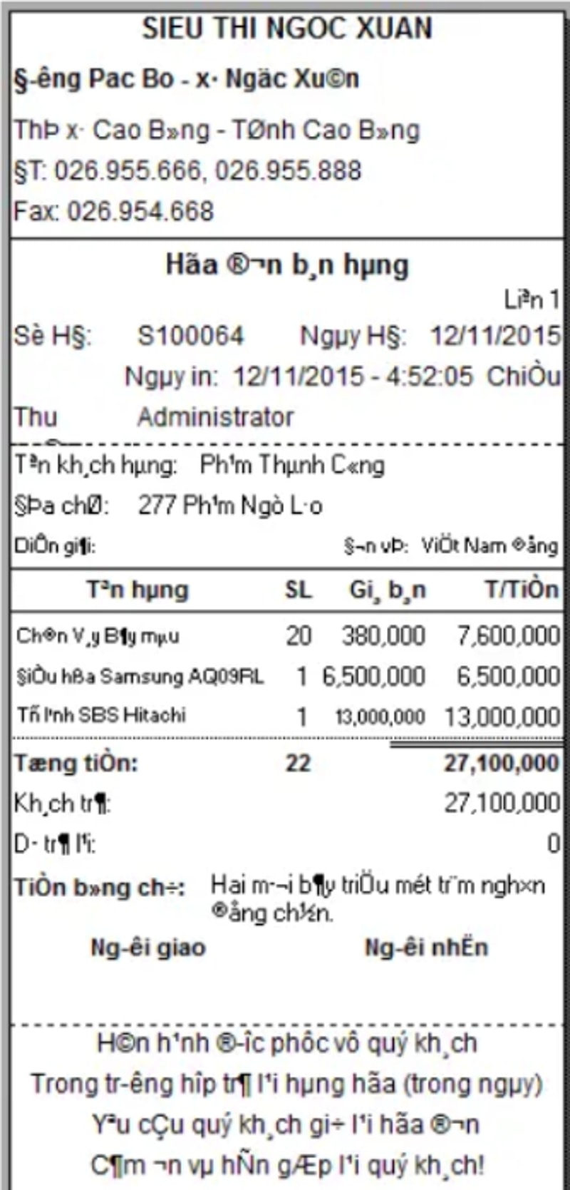 - Nội dung in bị lệch font hoặc xuống dòng không hợp lý