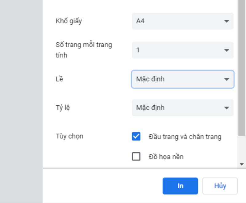 - Kiểm tra hướng in (ngang hoặc dọc) phù hợp với nội dung cần in.