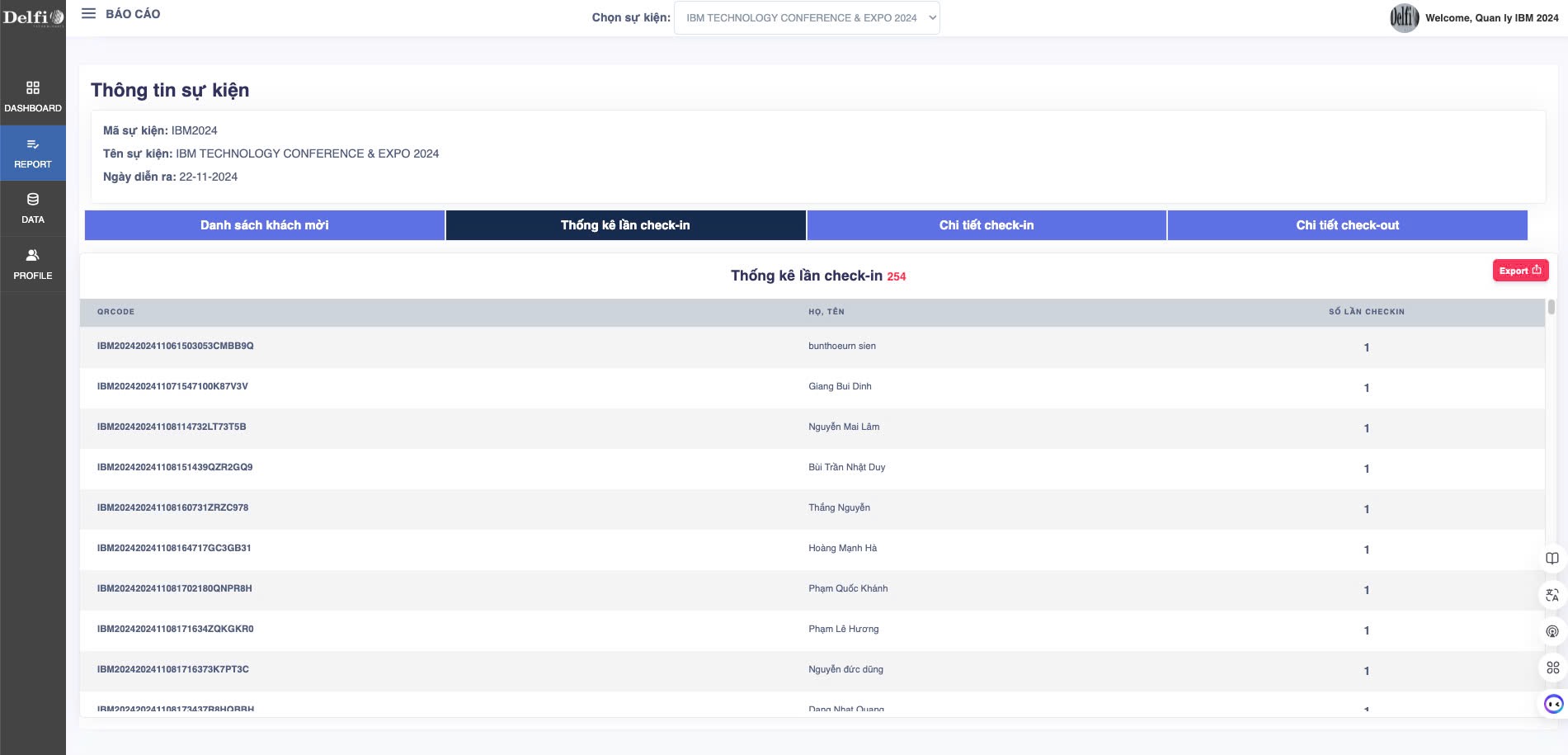 Delfi gửi báo cáo tổng hợp/chi tiết Khách tham dự sự kiện theo thời gian và danh sách Khách trúng thưởng theo từng hạng mục, giúp CADIVI:
