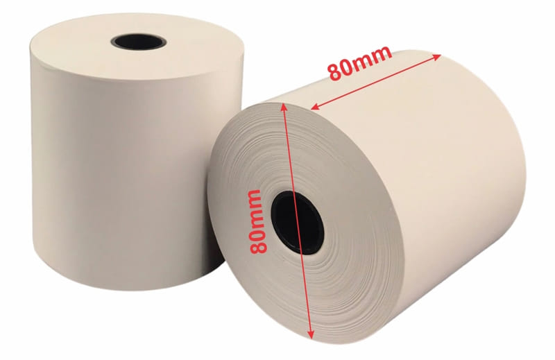 - Đường kính cuộn (Phi): Thường là phi 45mm, 65mm hoặc 80mm tùy theo hộc chứa giấy của máy in.