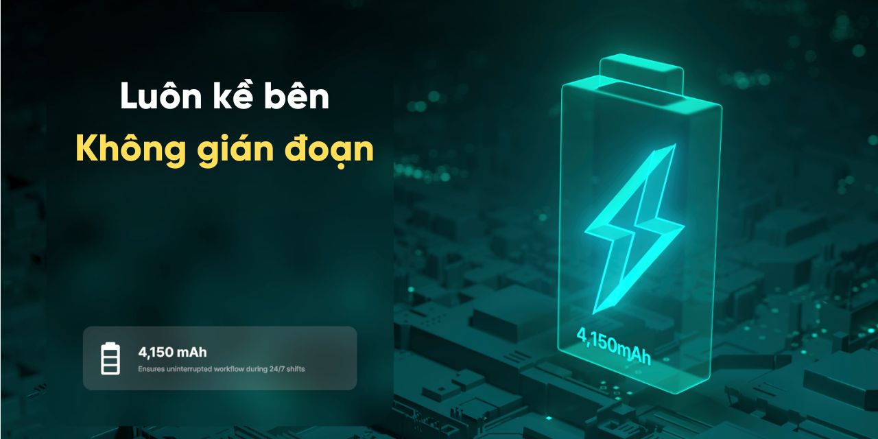 - Pin dung lượng 4.150 mAh, thời gian sử dụng dài, đáp ứng nhu cầu làm việc cường độ cao.