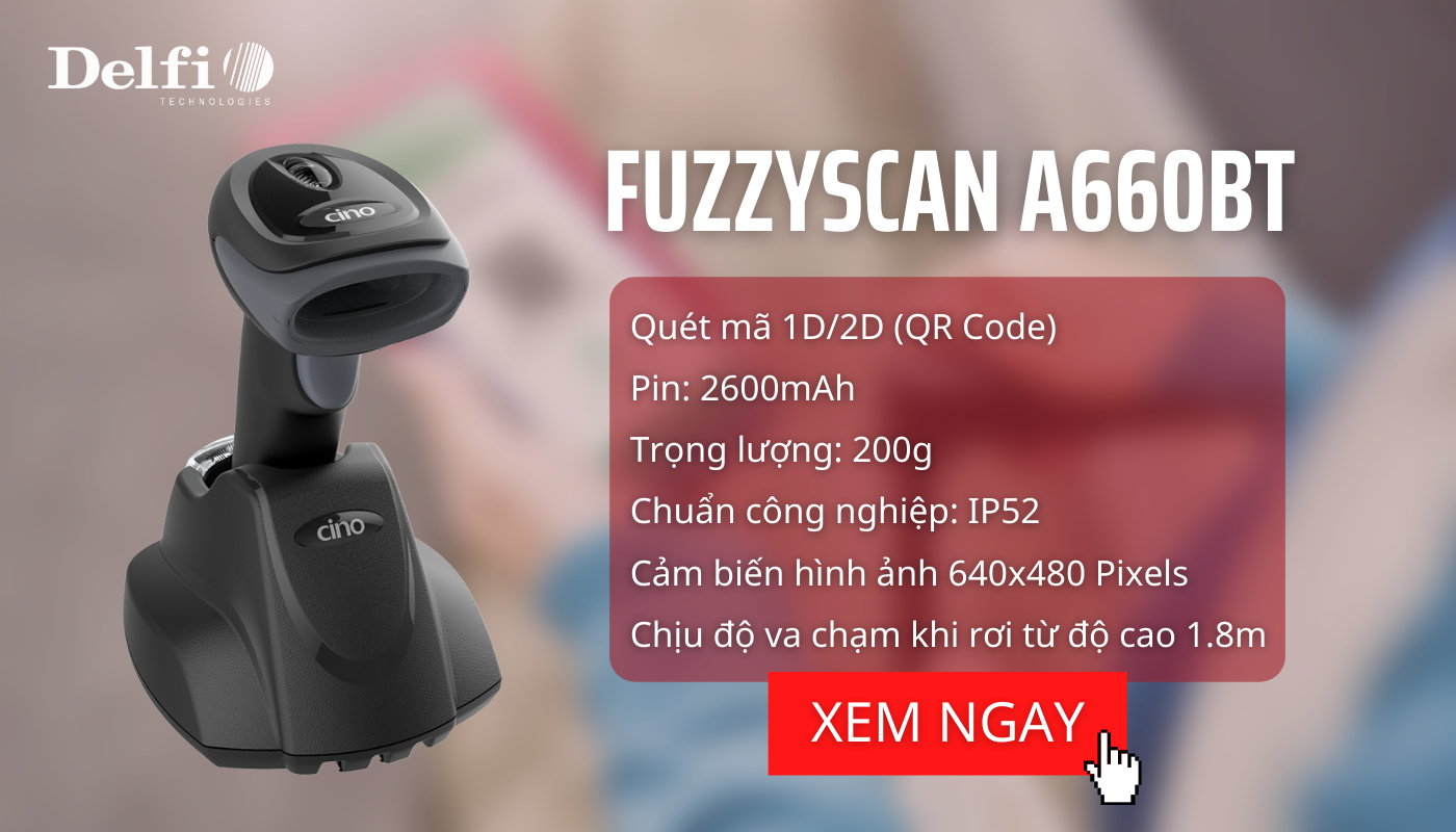 Máy quét mã vạch FUZZYSCAN A660BT không dây quét mã Qrcode với nhiều chức năng vượt trội giúp nâng cao hiệu suất làm việc. Sở hữu lượng PIN 2600 mAh giúp làm việc liên tục, cùng kết nối không dây dễ dàng di chuyển và truyền dữ liệu qua Bluetooth. Quét được hầu hết tất cả mã vạch kể cả bong tróc hư hỏng, biến dạng,...
